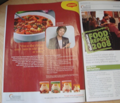 This week’s issue of The Publican (‘Proud of Pubs’) carries a Food Report supplement, sponsored by Nestle Professional, the foodservice arm of Nestle that represents Maggi , Nescafe and lots of well known confectionary brands like KitKat.