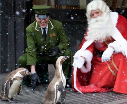 Santa even took his penguin friends with him to open the Harrods Christmas department (in August, so I think the snow might be courtesy of photoshop):
