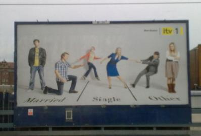 ITV’s Married Single Other – I really like how each character’s situation is played out visually (apologies for the lousy picture quality, was taken from a train):