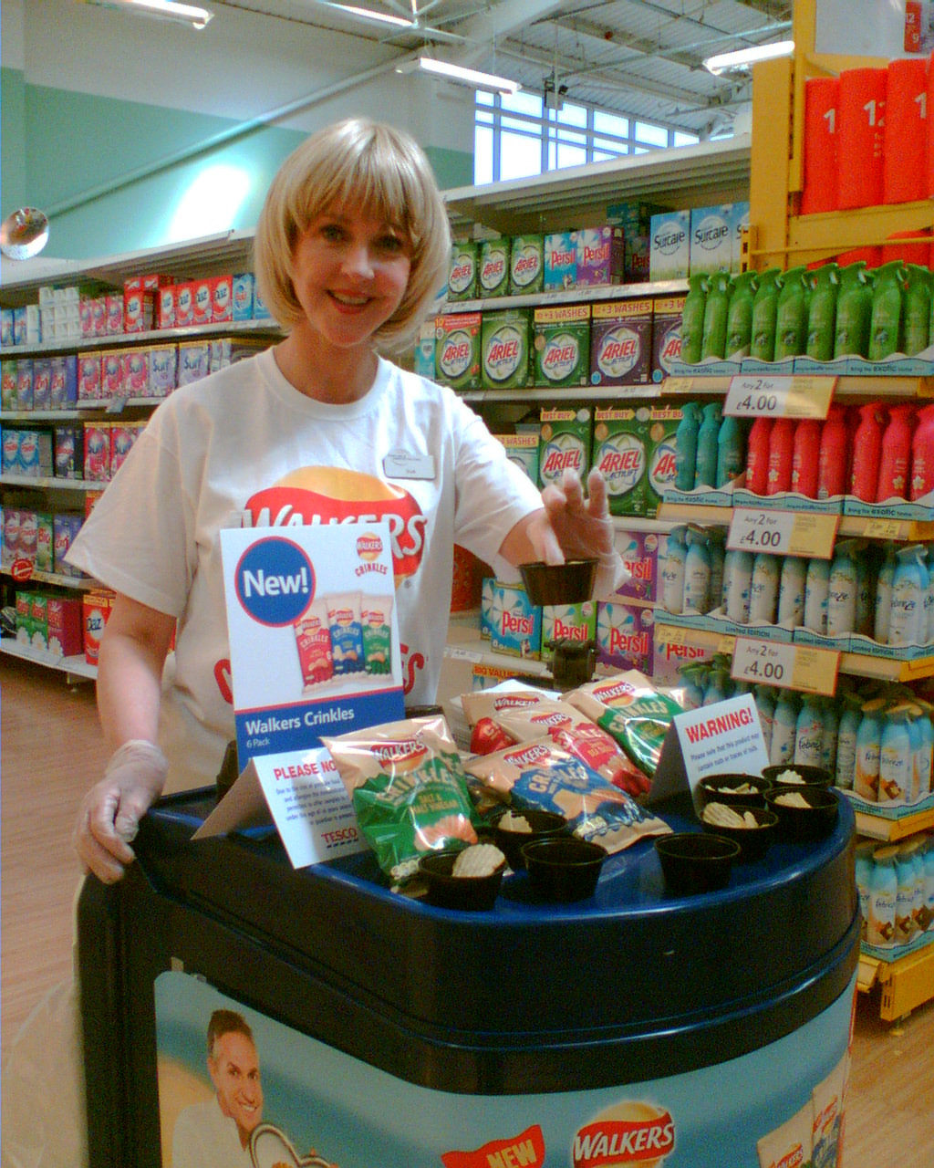 To sit alongside the uplifting recent bout of sunshine, royal weddings, multiple bank holidays and whathaveyou, I’d like to share with you the smiliest instore promotions lady I’ve ever met, on behalf of Walkers Crinkles in Tesco yesterday: