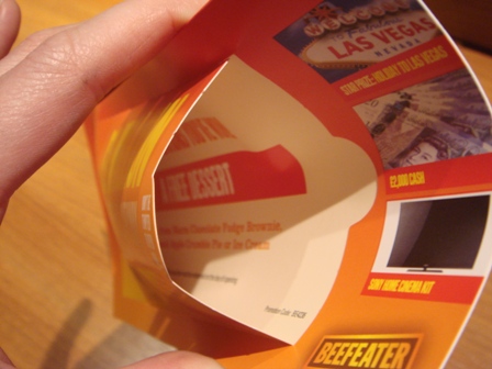 As soon as you flexed the card slightly the end popped open, revealing the prize inside without you technically ‘opening’ it. What if I’d won the holiday to Las Vegas? Would the brand reject the gamecard as it was accidentally opened? Another design fail.