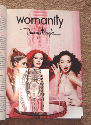 A sample of Thierry Mugler’s perfume Womanity fell out of this month’s Glamour magazine (don’t judge me, it’s buy that or sit in the hairdressers reading three month old copies of Hello!).