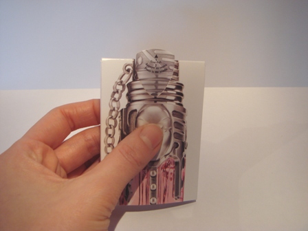 You pull the top tab and not only does the card start to look like a perfume bottle (with handy visual cues so you’ll recognise it on shelf in the shop or online), but the bottom simultaneously pops out and you have a fully functioning perfume spray bottle ready to go.