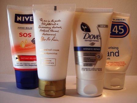 Take a look at these handcreams (collected from around my house). Which is the odd one out?
