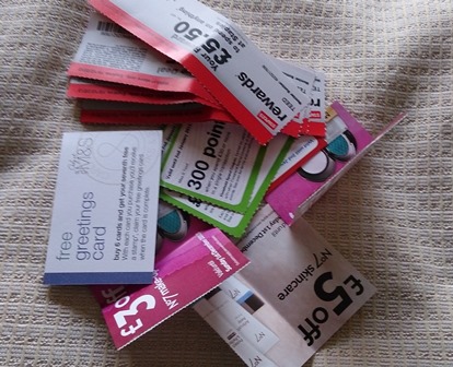 The vouchers above are what's left in my purse after I used seven others up on Monday. Which seems excessive. At Boots, I used five vouchers, got three back and took advantage of a 3for2 resulting in over a tenner 'saving' on my basket of health and beauty stuff - and an extra £7 in … Continue reading I came, I shopped, I vouchered